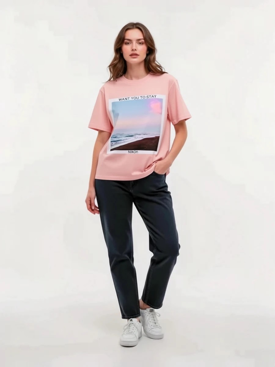 Футболка оверсайз (розовый) - Want you to stay